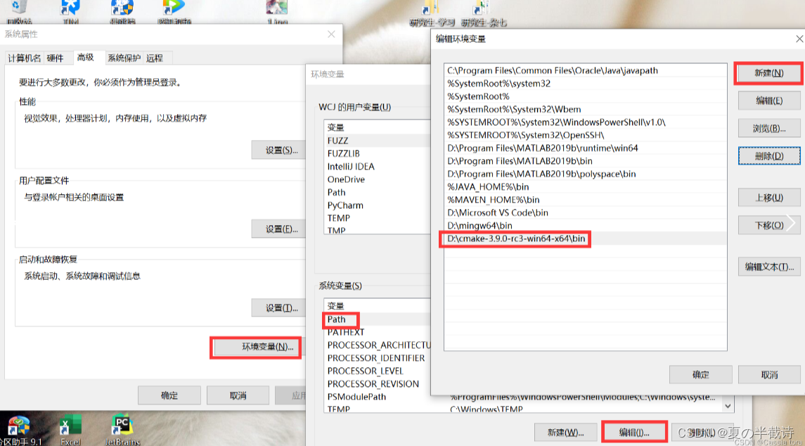 解压[[MinGW-w64]]压缩包,将该文件夹的bin路径添加到环境变量的系统变量中