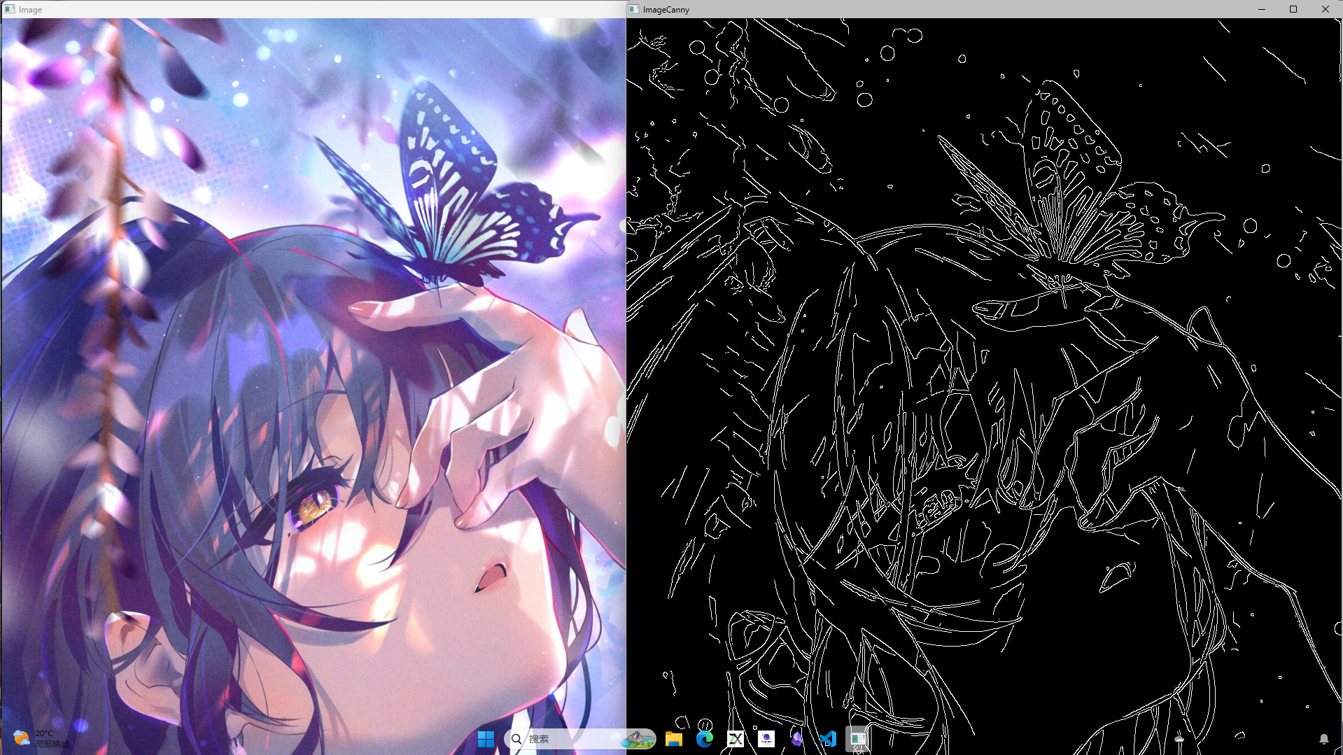 | #include <opencv2/imgcodecs.hpp> #include <opencv2/highgui.hpp> #include <opencv2/imgproc.hpp> #include <iostream> using namespace cv; using namespace std; int main() { string path = "../lesson1_pictureRead/img1.jpg"; Mat img = imread(path); Mat imgBlur,imgCanny; GaussianBlur(img, imgBlur, Size(3, 3), 3, 0); Canny(imgBlur, imgCanny, 75, 125); imshow("Image", img); imshow("ImageCanny", imgCanny); waitKey(0); return 0; }